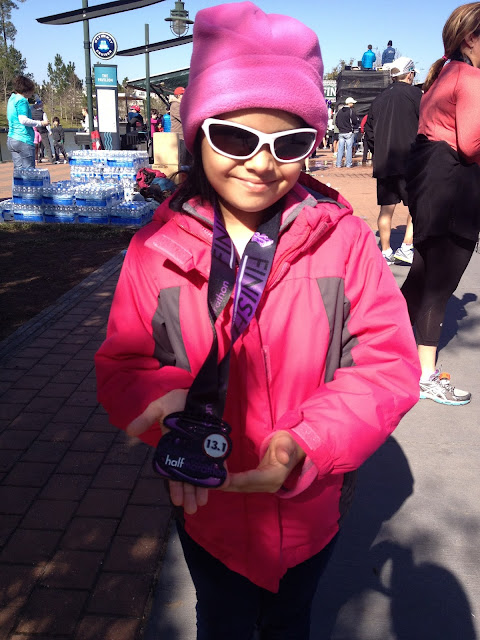 Once I got to mile 10 I knew the end was in sight and all I had were only three more miles. The funny thing is that they didn't have mile markers past mile 11 and so probably around mile 12, I called Hrishi to let him know that I am close... I didn't realize how close I was though. I started hearing people screaming and cheering "You're there, you made it, you're close, very close" and I realized that we were close indeed. I started sprinting probably on my last quater mile and finished strong at 2:45:05. I was not only sprinting but cheering myself on, screaming like crazy things like "I did it" or something along those lines, ha-ha! Of course the crowd was going crazy as we entered the finish line alley but I couldn't really hear them, I could only hear myself. Later on, Hrishi showed me the video he shot while I was getting close to the finish and I heard him scream "Go Momma, go!! Stepping across the finish line was electrifying, a feeling hard to describe or replicate. Something that made it all worth it. I honestly didn't expect this distance to be so accessible (I won't necessarily say easy) to me. I'm sure it's because I stuck to the training regimen for the most part.
